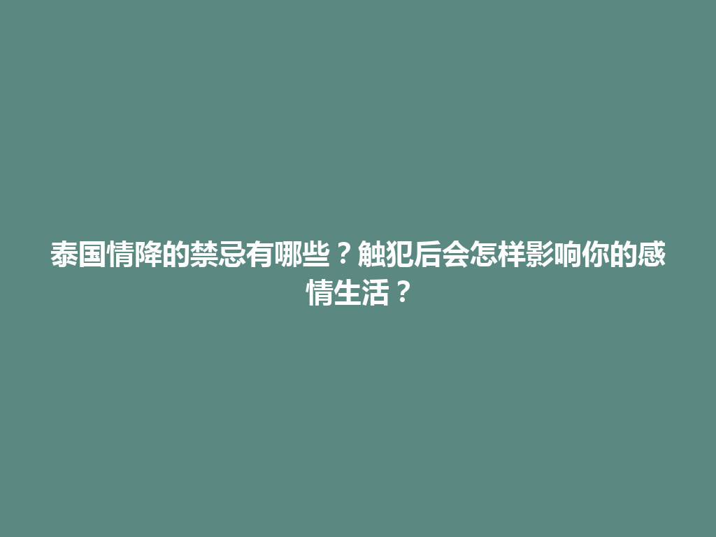威宁彝族回族苗族自治县泰国情降的禁忌有哪些?触犯后会怎样影响你的感情生活?