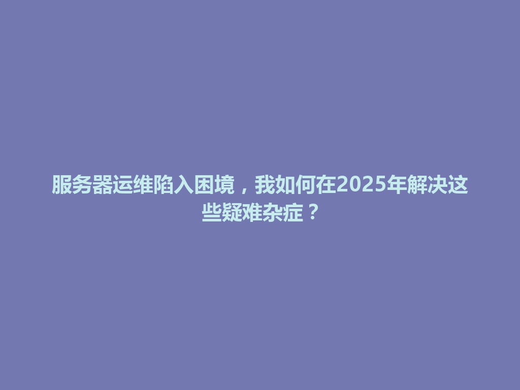 威宁彝族回族苗族自治县服务器运维陷入困境,我如何在2025年解决这些疑难杂症?